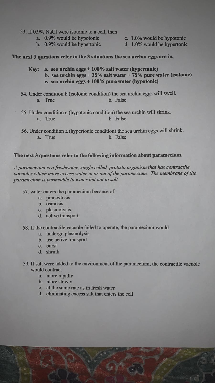 Solved 53 If 0 9 Nacl Were Isotonic To A Cell Then A Chegg Com