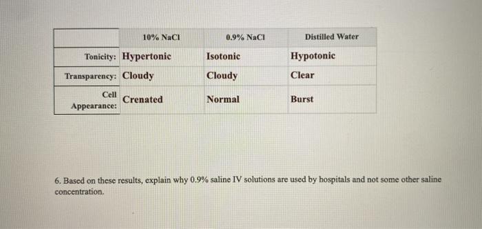 Solved 10 Naci 0 9 Naci Distilled Water Isotonic Hypotonic Chegg Com